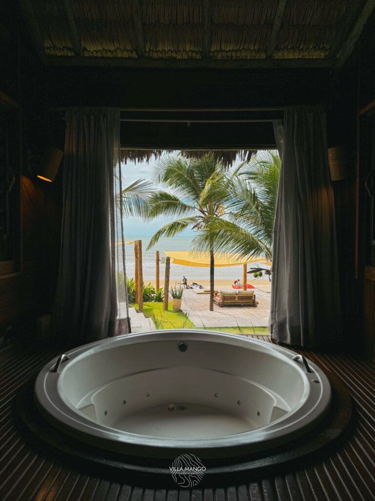 Confortável cama de casal king size – 2×2 mts, com vista panorâmica.